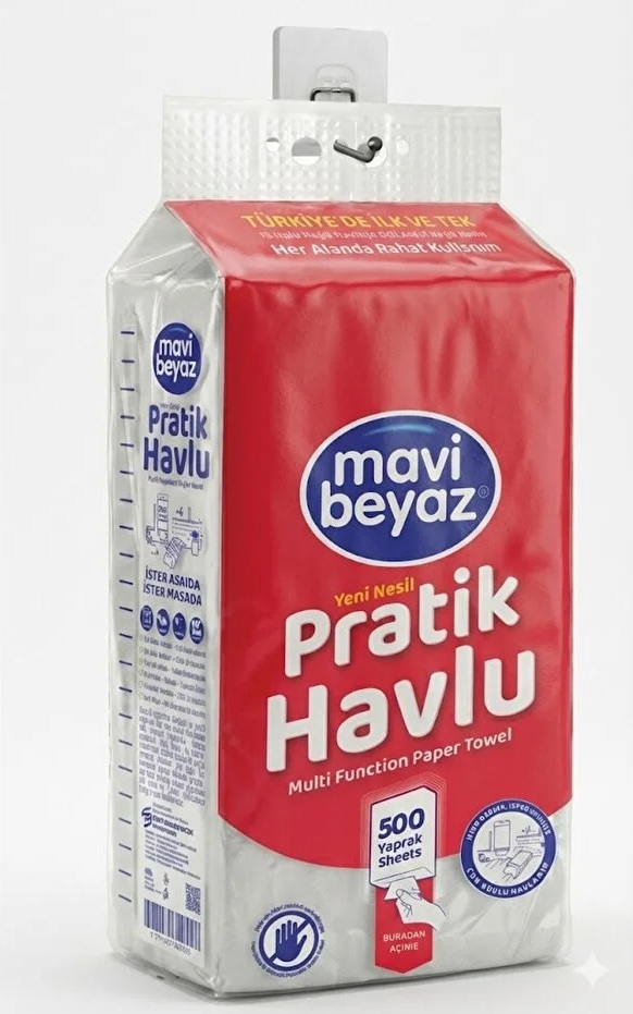 Mavi Beyaz Pratik Havlu 500 Yaprak – Yeni Nesil Çok Amaçlı Kağıt Havlu (Asma Aparatı Hediyeli)